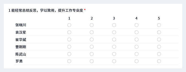 公司沒有相關(guān)的評估系統(tǒng),用問卷星360度評估很方便,既可以按照不同的層級占比進(jìn)行不同的分?jǐn)?shù)計算,也可以按照不同的題目類別進(jìn)行分類匯總,相比人工統(tǒng)計非常省時。技術(shù)支持也很nice,響應(yīng)很迅速,好評!