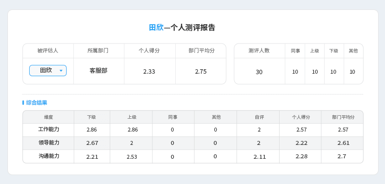 老師是一個學(xué)校的靈魂,影響著所有被教育的學(xué)生,所以一個老師是否優(yōu)秀至關(guān)重要??扇绾卧u估一個老師是否優(yōu)秀?學(xué)生如果對某些老師的教育方式不甚滿意,但礙于師生關(guān)系無處表達(dá),只能私下吐槽。如何給學(xué)生提供表達(dá)真實想法的渠道?這兩點對學(xué)校而言都是至關(guān)重要的,但是如何做到?問卷星360度評估系統(tǒng)給您答案: 首先 需要提供一個合適的方式讓所有的學(xué)生能夠表達(dá)自己對老師教學(xué)方式的滿意度,通過學(xué)生的實際反饋可以讓老師們知道自己的教學(xué)弱點,從而進(jìn)行改進(jìn)。與此同時,老師們的互評也能多方面體現(xiàn)被評者的優(yōu)缺點,相互取長補短,共同進(jìn)步。